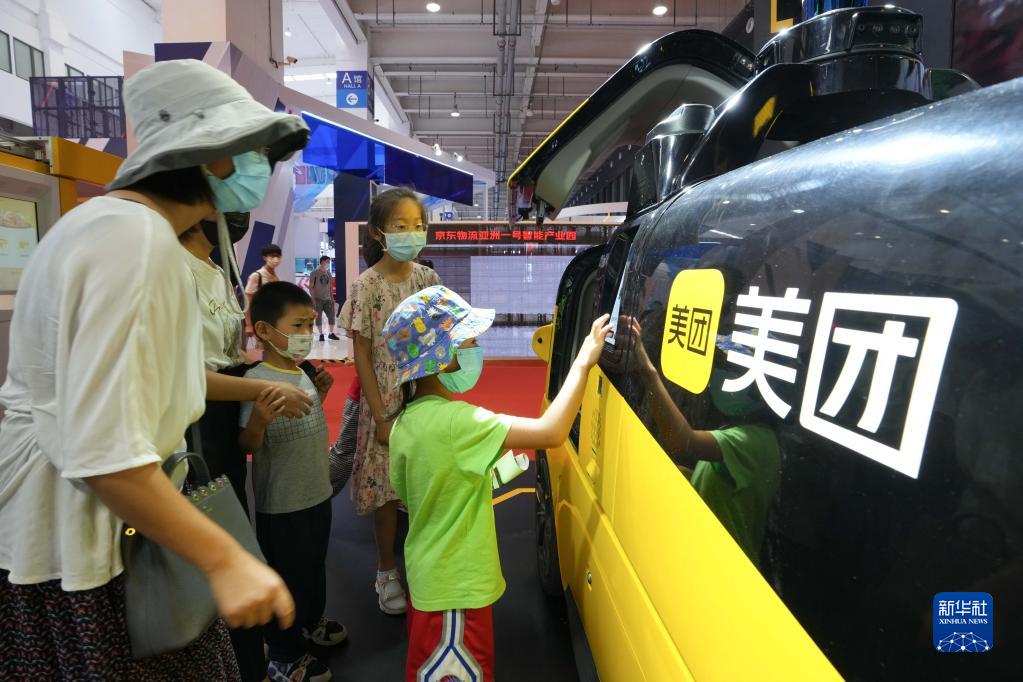 參觀(guān)者在2022世界機器人博覽會(huì )“機器人+物流”區域觀(guān)看展示的無(wú)人配送車(chē)(8月19日攝)。