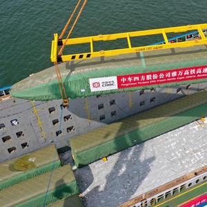 8月21日,我國出口印尼用于雅萬(wàn)高鐵的1組高速動(dòng)車(chē)組和1組綜合檢測列車(chē)在山東港口青島港完成裝船,通過(guò)海運發(fā)往印尼。
