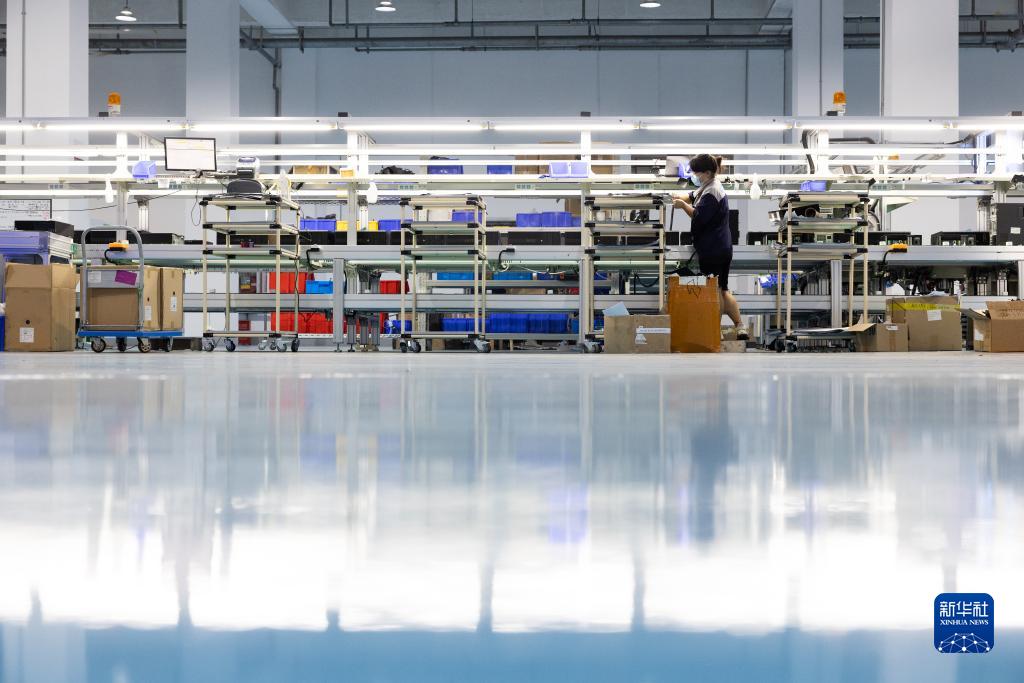 在臨港新片區洋山特殊綜合保稅區的一家電子公司生產(chǎn)車(chē)間內,作為第三方保稅維修業(yè)務(wù)的一部分,工人在維修電子設備(8月17日攝)。
