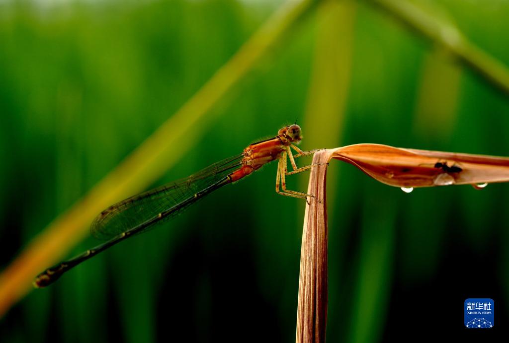 8月21日在上海松江區洞涇鎮一個(gè)家庭農場(chǎng)稻田里拍攝的豆娘。