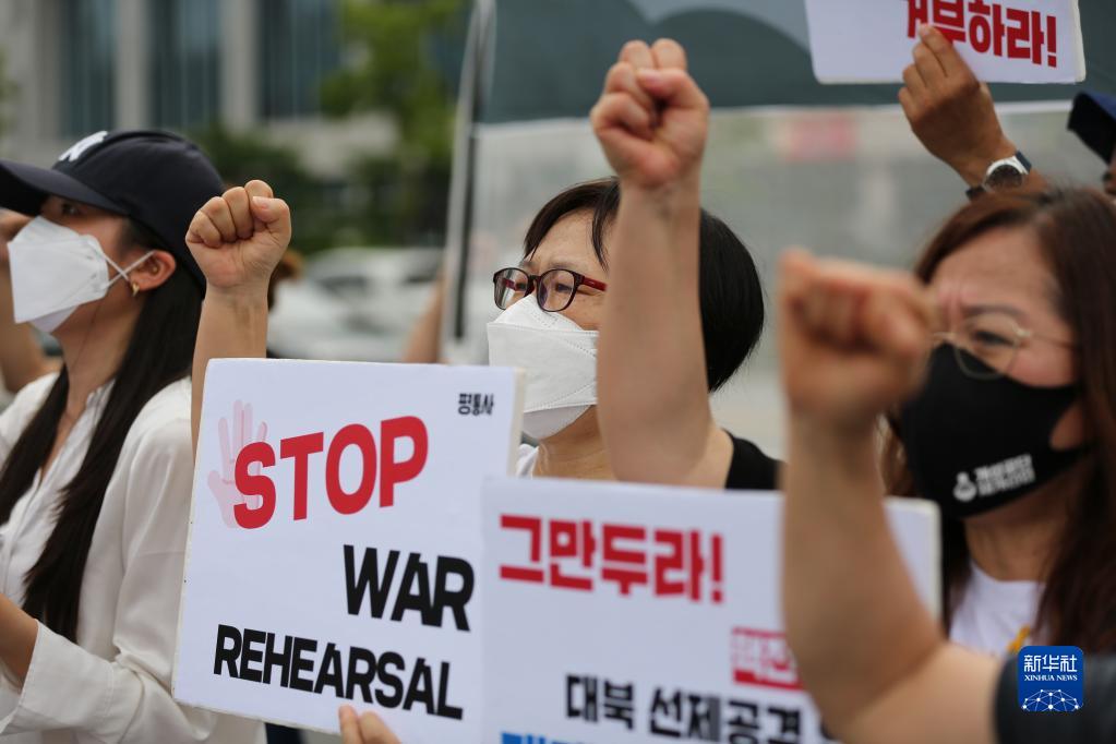 韓美兩國軍隊22日正式啟動(dòng)下半年“乙支自由之盾”聯(lián)合軍演。韓國多個(gè)民間團體當天在首爾舉行抗議集會(huì )。