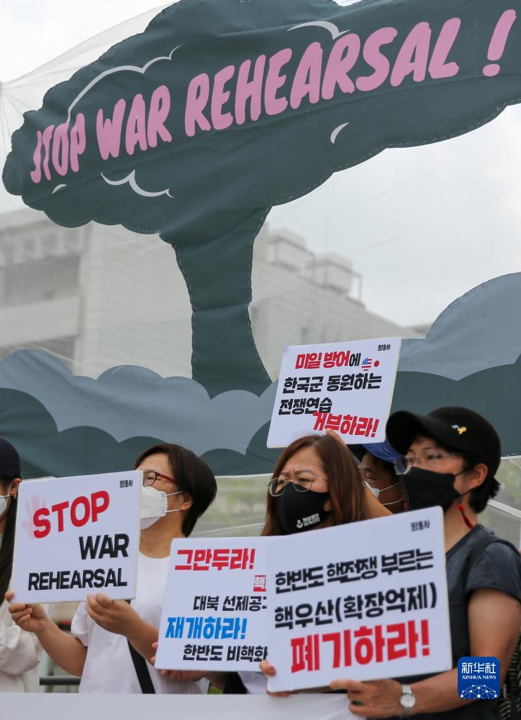 韓美兩國軍隊22日正式啟動(dòng)下半年“乙支自由之盾”聯(lián)合軍演。韓國多個(gè)民間團體當天在首爾舉行抗議集會(huì )。