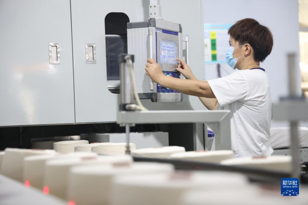 8月22日,在南和區東善友橋村一家紡織廠(chǎng),女工操作自動(dòng)打包機。