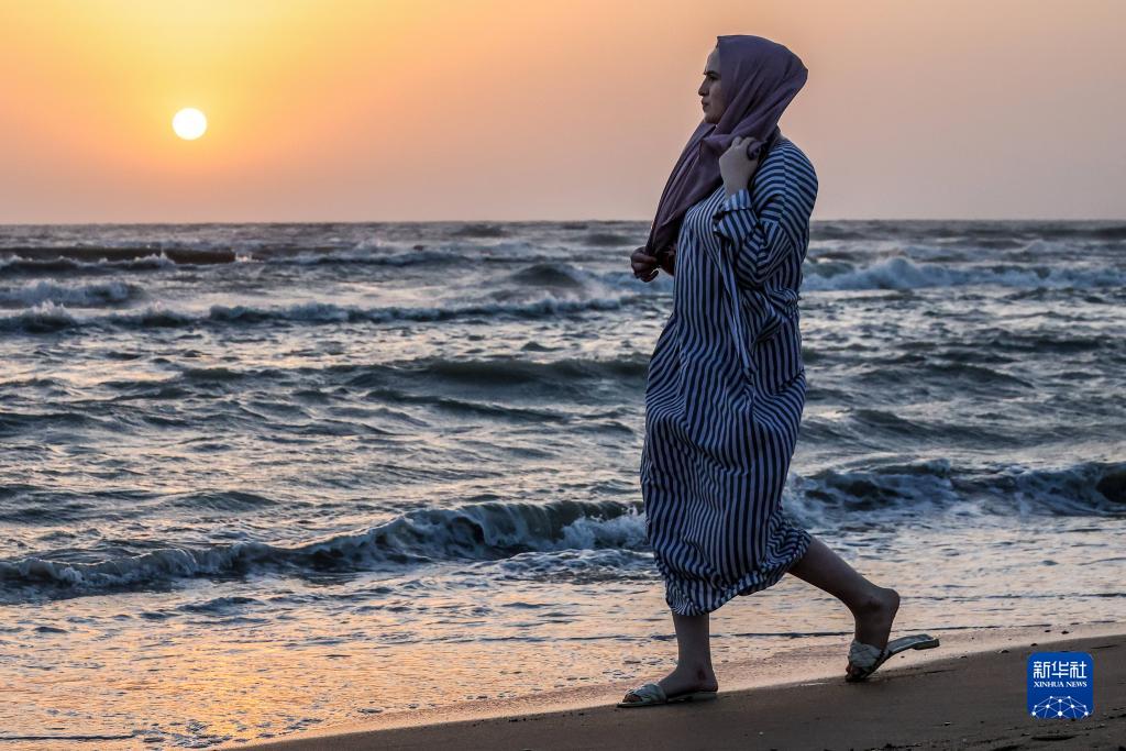 8月21日,一名女子在俄羅斯達吉斯坦共和國馬哈奇卡拉市的海濱散步。新華社/塔斯社