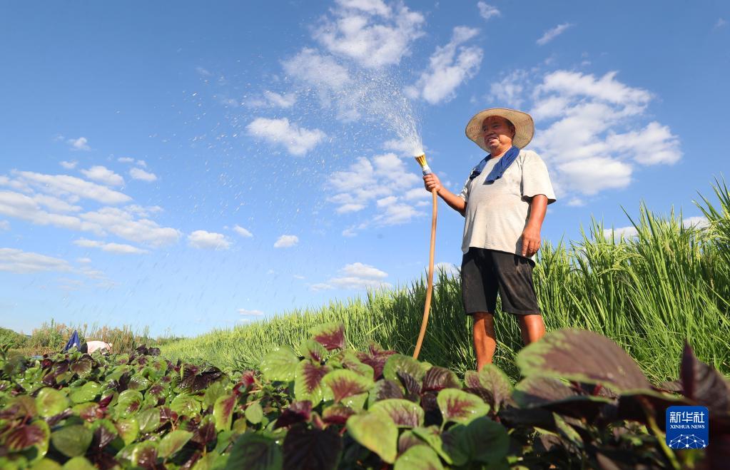 8月22日,湖南省衡陽(yáng)市石鼓區角山鎮村民在灌溉菜地。