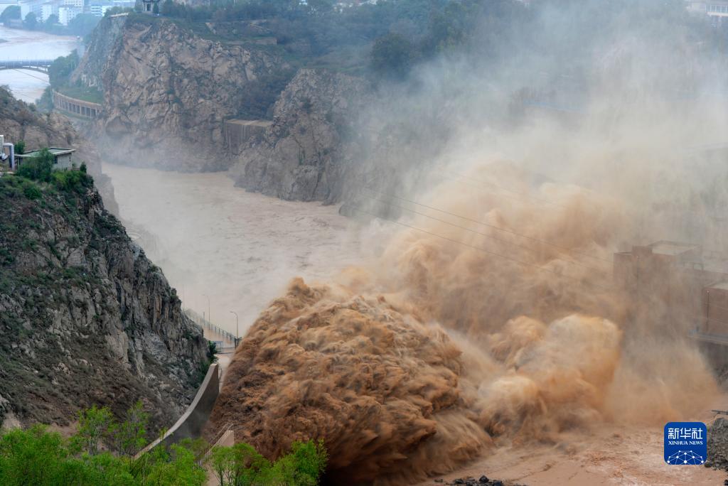 當日,受強降水天氣影響,黃河劉家峽水庫來(lái)沙量急劇增加,劉家峽水庫按照調度要求進(jìn)行調水排沙。夾裹著(zhù)大量泥沙的水流從排沙洞出口噴涌而出,場(chǎng)面壯觀(guān)。