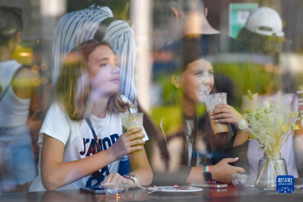 8月22日,人們在俄羅斯莫斯科一家“星咖啡”門(mén)店用餐。