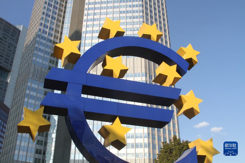 這是8月22日在德國法蘭克福拍攝的歐元雕塑。
