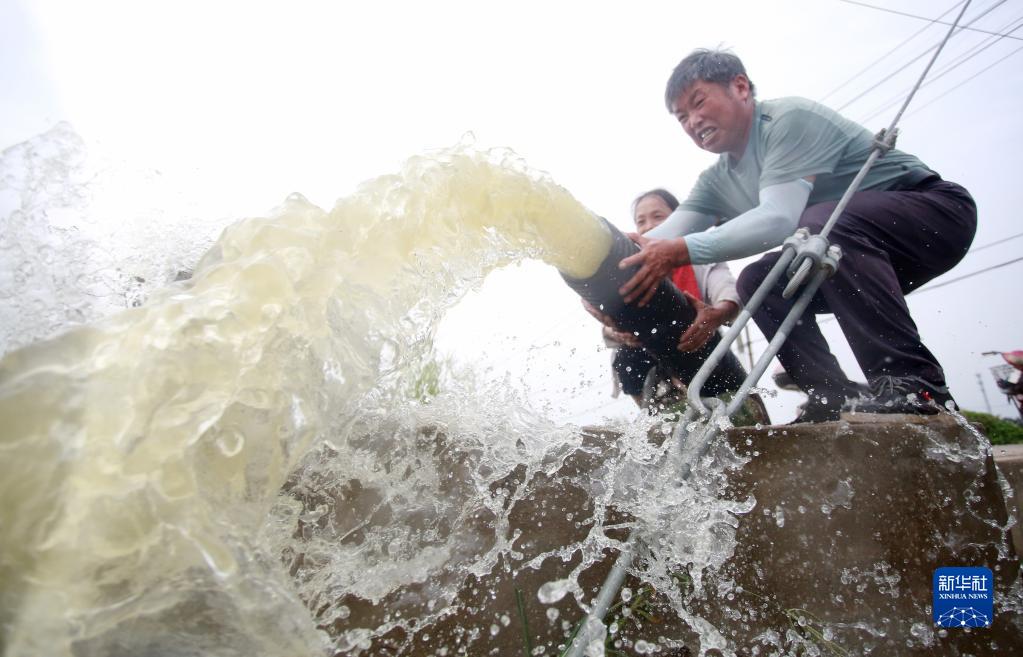 8月23日,在江蘇省揚州市江都區的一處稻田,農民抽水灌溉農田。