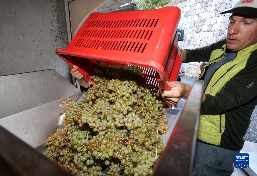 8月23日,工作人員在法國尼斯一家酒莊的葡萄園收割葡萄。