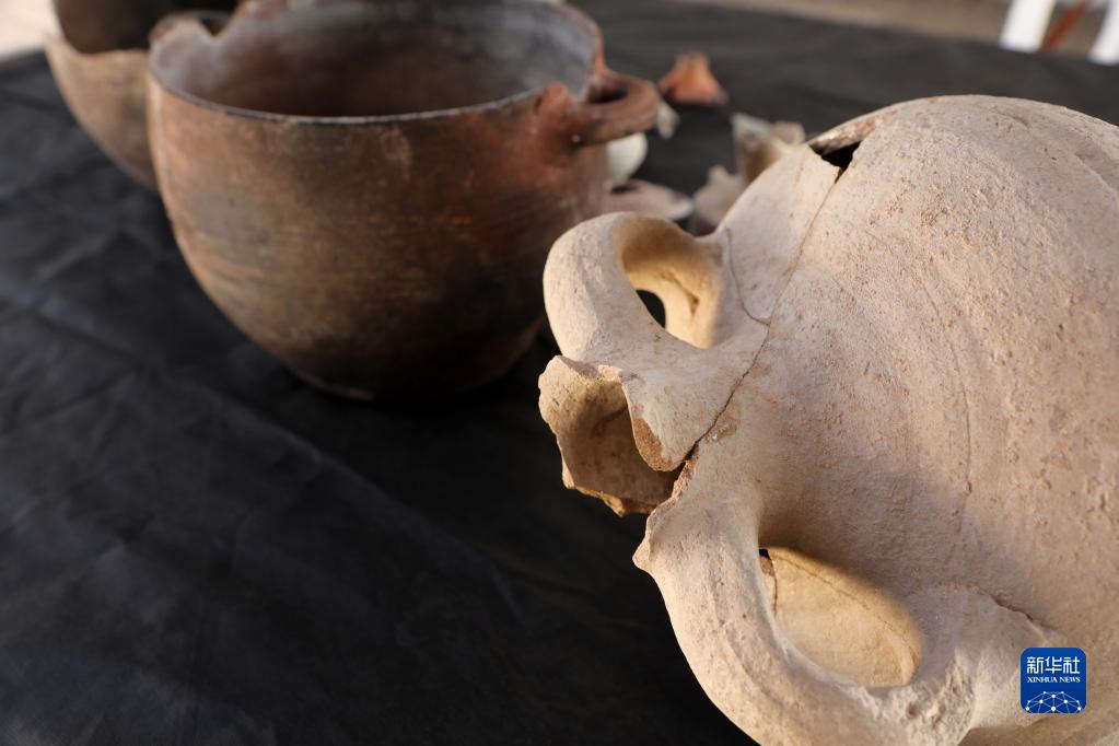 這是8月23日在以色列南部?jì)壬w夫沙漠地區拍攝的古代“豪宅”遺址出土文物。新華社發(fā)(吉爾·科恩·馬根攝)