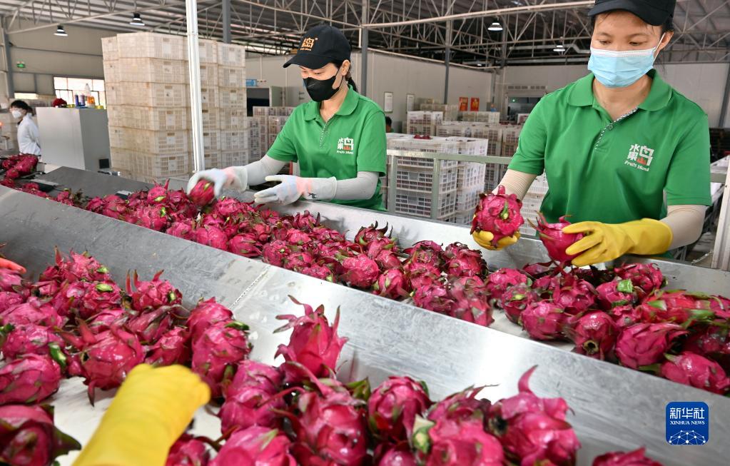 8月24日,村民在三亞市育才生態(tài)區馬腳村“水果島”火龍果生產(chǎn)基地分揀火龍果。