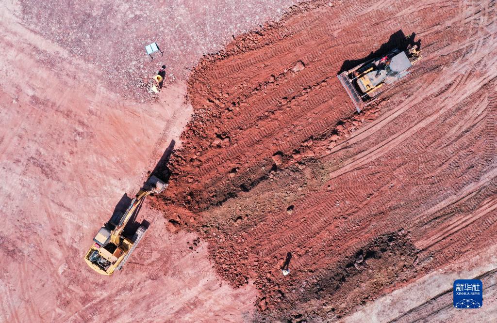 這是8月23日拍攝的新建重慶至黔江鐵路重慶東站動(dòng)車(chē)所路基項目施工作業(yè)現場(chǎng)(無(wú)人機照片)。