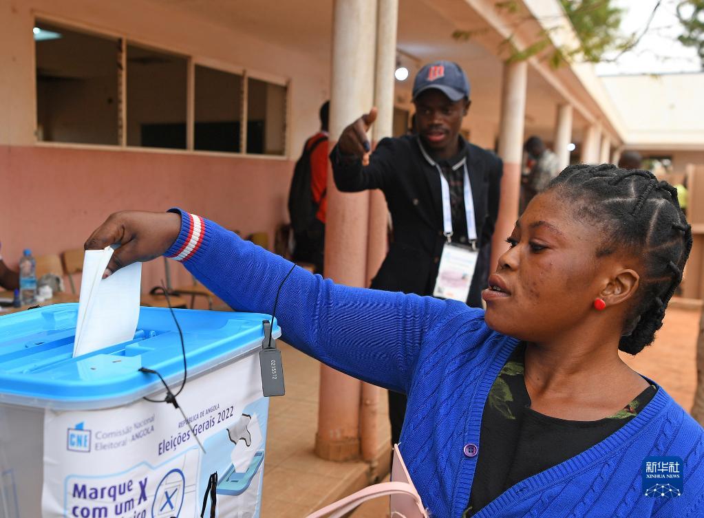8月24日,在安哥拉羅安達省的一處投票站,選民將填寫(xiě)好的選票投入選票箱。
