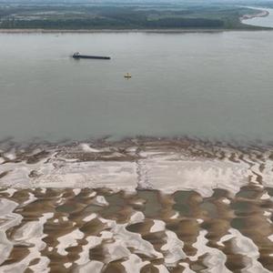 這是長(cháng)江柴桑區段裸露的灘涂(8月24日攝,無(wú)人機照片)。