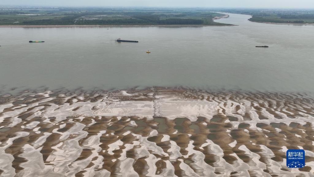 這是長(cháng)江柴桑區段裸露的灘涂(8月24日攝,無(wú)人機照片)。