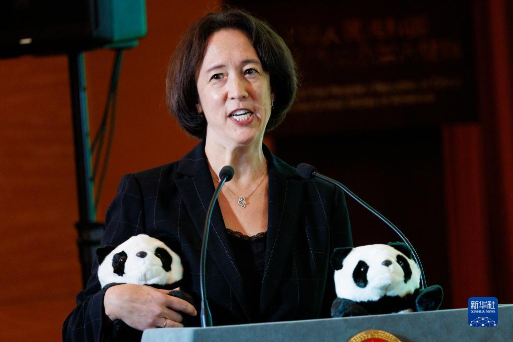 8月24日,在美國華盛頓中國駐美國大使館,史密森學(xué)會(huì )副秘書(shū)長(cháng)兼首席運營(yíng)官梅羅·樸在“大熊貓之夜”招待會(huì )上發(fā)表致辭。