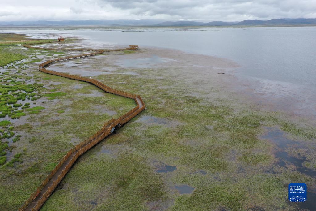 這是在甘肅省甘南藏族自治州碌曲縣拍攝的尕海湖(無(wú)人機照片,2021年6月2日攝)。新華社記者 杜哲宇 攝