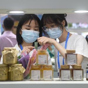 8月26日,客商在廣州博覽會(huì )鄉村振興展上參觀(guān)選購農副產(chǎn)品。
