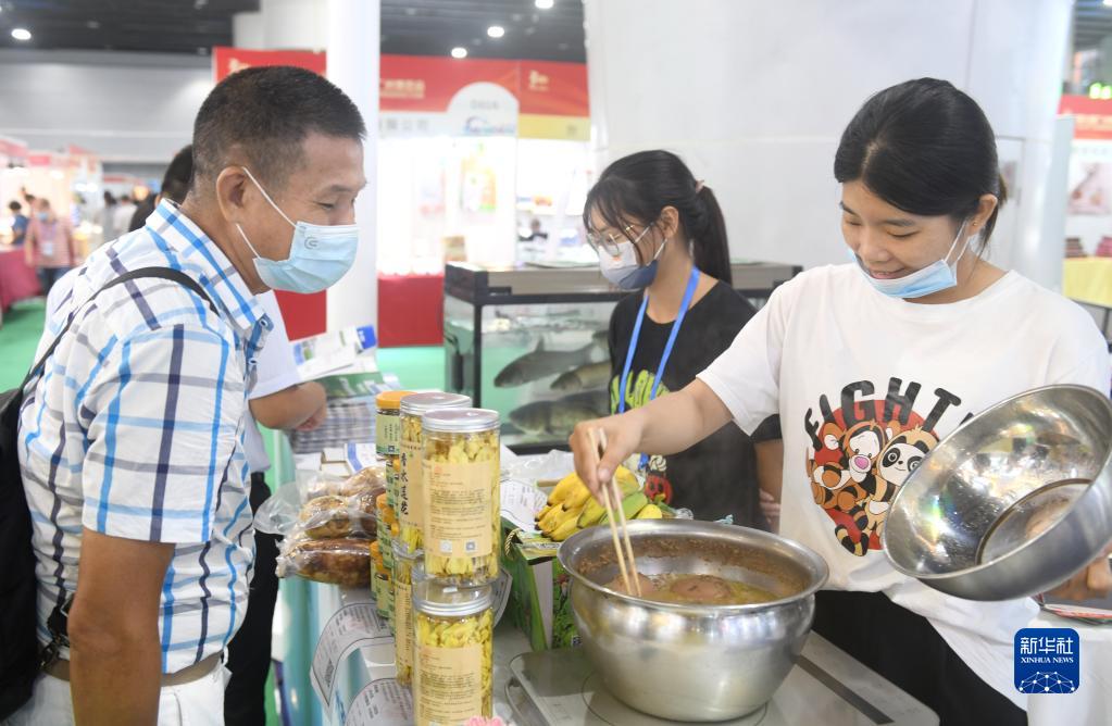 8月26日,參展商在廣州博覽會(huì )鄉村振興展上烹飪、展示自家農產(chǎn)品。