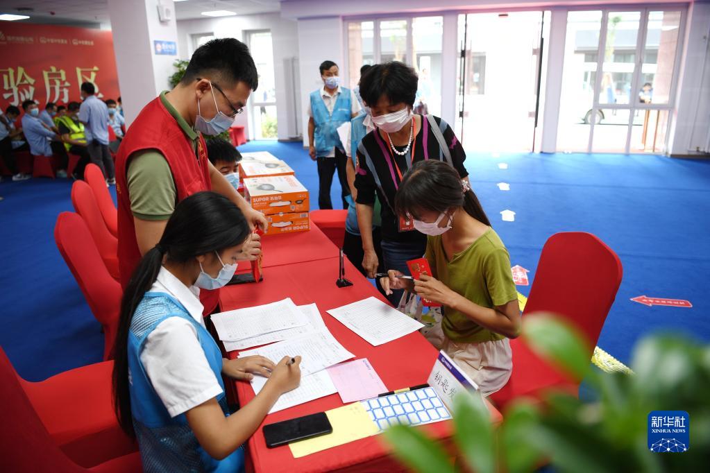 8月26日,回遷居民在雄安新區雄東片區A單元安置房交付點(diǎn)領(lǐng)取鑰匙。