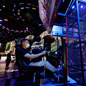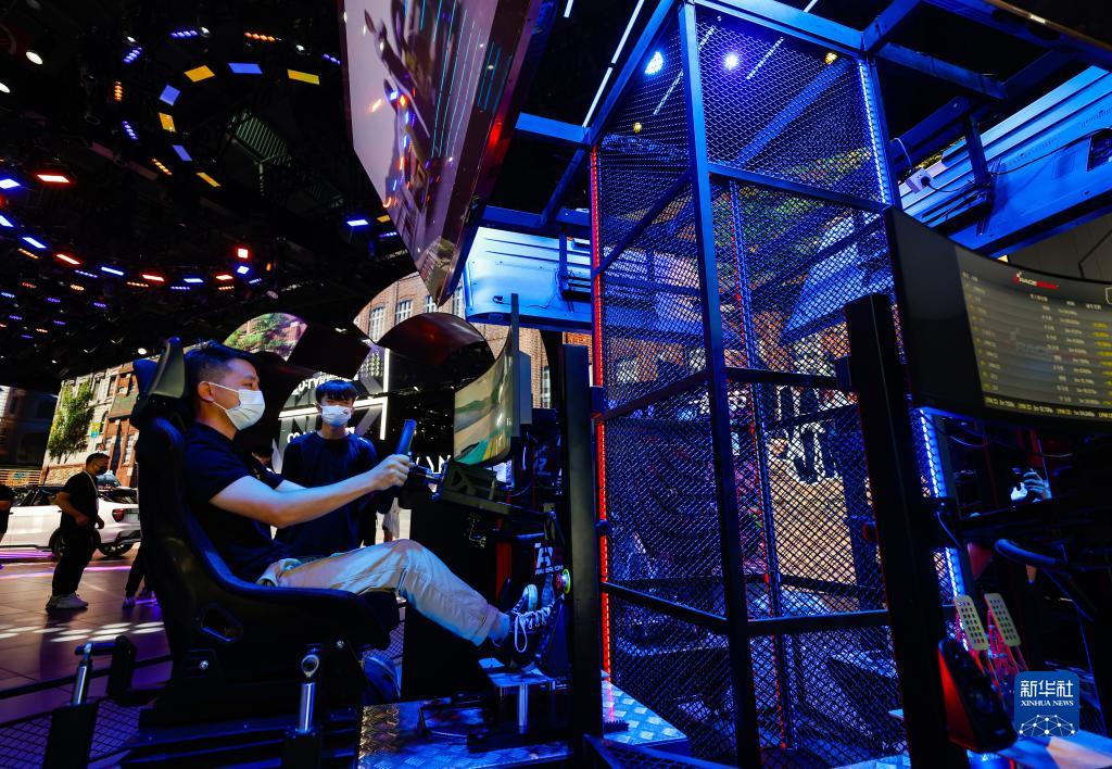 8月26日,在第二十五屆成都國際汽車(chē)展覽會(huì )上,參觀(guān)者體驗賽車(chē)游戲。