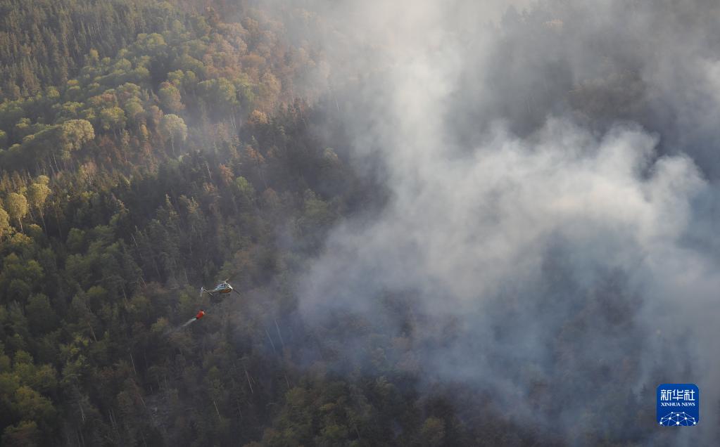 8月24日,直升機在格魯吉亞中部博爾若米附近山區滅火。