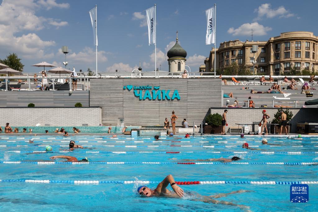 8月25日,人們在俄羅斯莫斯科的露天游泳池游泳。