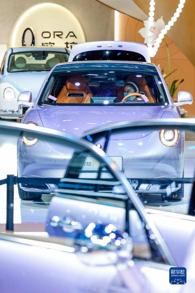 8月26日,在第二十五屆成都國際汽車(chē)展覽會(huì )的長(cháng)城歐拉汽車(chē)展臺,參觀(guān)者在體驗新能源汽車(chē)“歐拉閃電貓”。