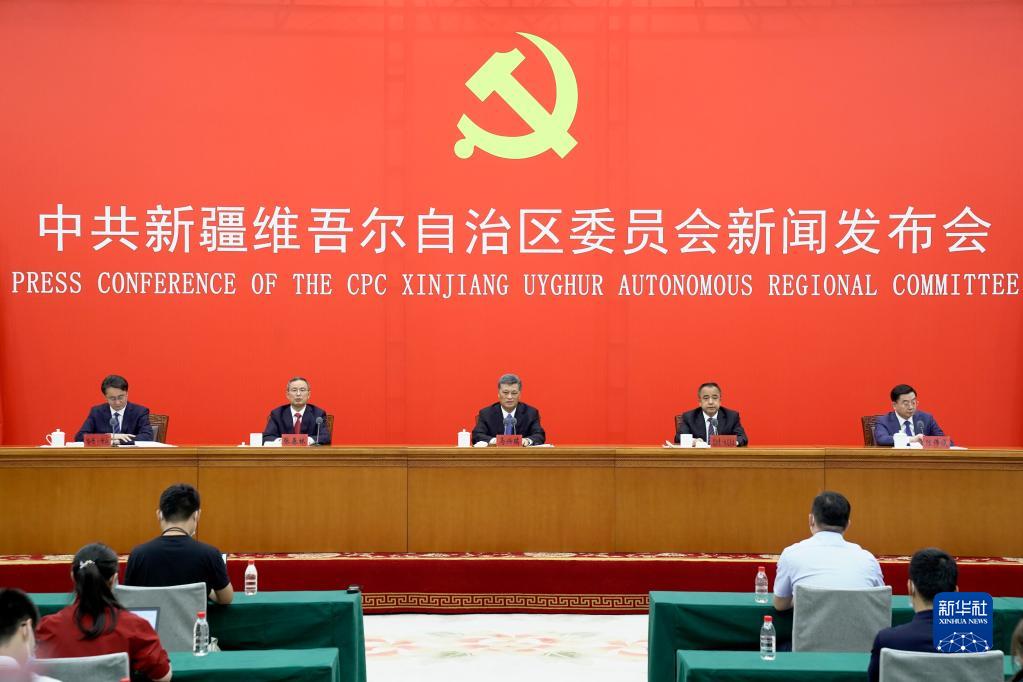 8月27日拍攝的“中國這十年·新疆”主題新聞發(fā)布會(huì )現場(chǎng)。新華社記者 白志強 攝
