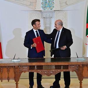 阿爾及利亞總統特本27日與到訪(fǎng)的法國總統馬克龍在阿爾及爾簽署《關(guān)于重建伙伴關(guān)系的阿爾及爾宣言》,承諾建立基于互信的戰略關(guān)系,并開(kāi)啟兩國合作的新時(shí)代。