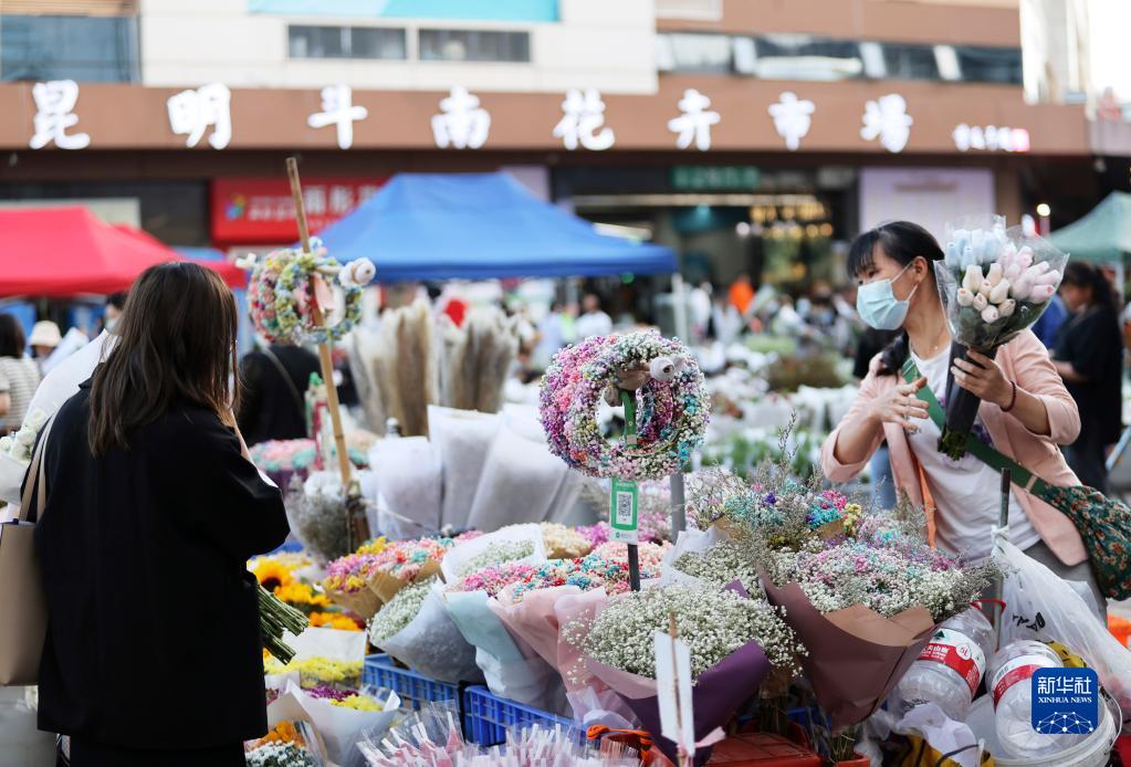 昆明市斗南花市以花卉消費體驗、旅游體驗、文化體驗為特色。日前,斗南花市入選第二批國家級夜間文化和旅游消費集聚區名單,花市采取了加強管理、延長(cháng)營(yíng)業(yè)時(shí)間、增加營(yíng)業(yè)場(chǎng)地等舉措,吸引更多顧客。