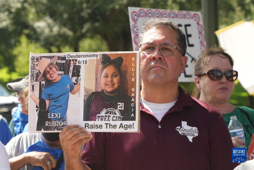 當日,包括得州小學(xué)槍擊案遇難者親屬在內的抗議者在奧斯汀市舉行集會(huì )呼吁控槍。5月24日發(fā)生在得州尤瓦爾迪市羅布小學(xué)的槍擊案造成19名小學(xué)生和兩名教師死亡,震動(dòng)全美。