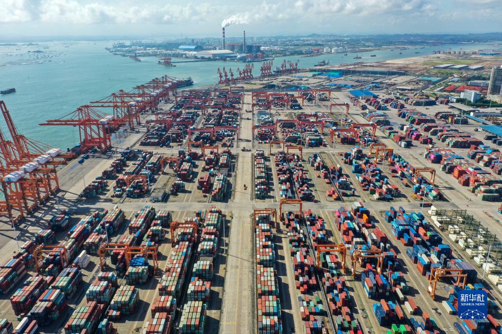 這是8月27日拍攝的位于平陸運河出??诟浇谋辈繛掣蹥J州港區大欖坪作業(yè)區(無(wú)人機照片)。