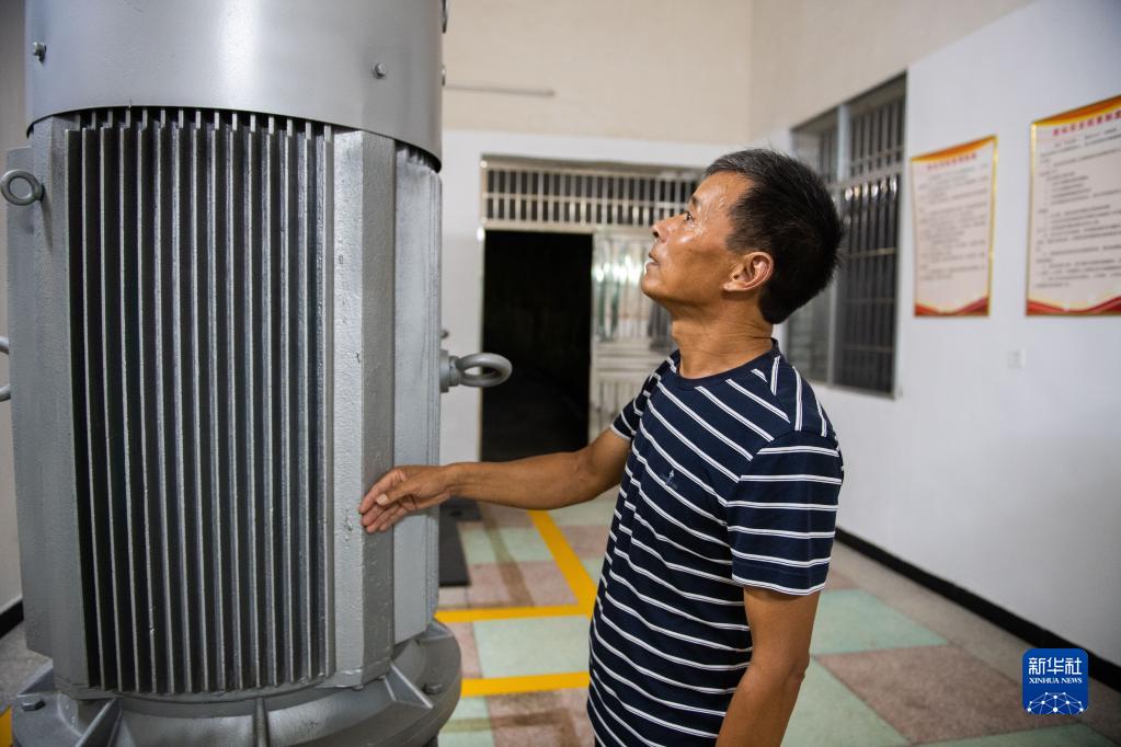 8月24日,湖南省常德市安鄉縣三岔河鎮水利管理站值班人員在檢查泵站電機運行情況。