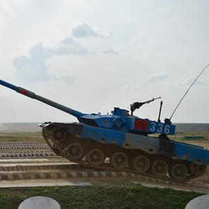 8月27日,在俄羅斯莫斯科州阿拉比諾靶場(chǎng),中國參賽隊96B坦克在比賽中。