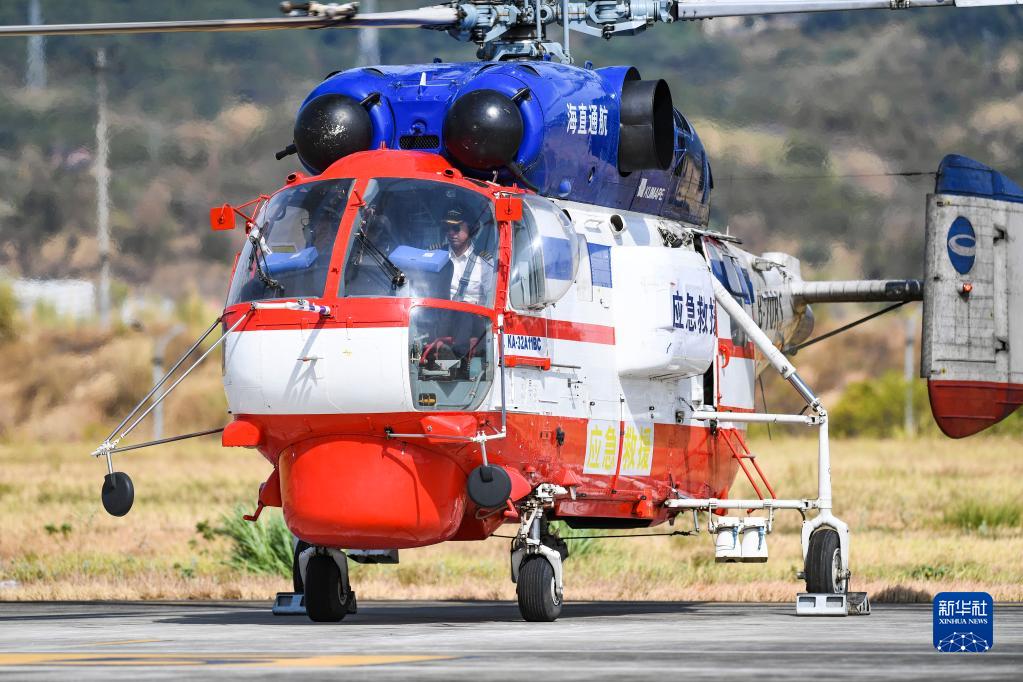 8月28日,在重慶龍興通用機場(chǎng),來(lái)自四川廣安的一架救援直升機準備起飛返回。