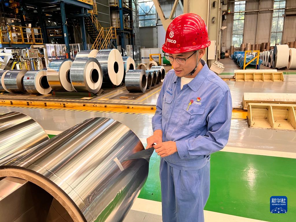 段浩杰展示厚度為0.015毫米的“手撕鋼”(8月25日攝)。