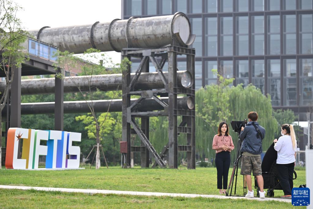 8月29日,在服貿會(huì )首鋼園區,記者在媒體探營(yíng)活動(dòng)中進(jìn)行拍攝報道。