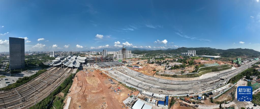 這是8月30日拍攝的新建福廈鐵路廈門(mén)北站施工現場(chǎng)(無(wú)人機合成照片)。