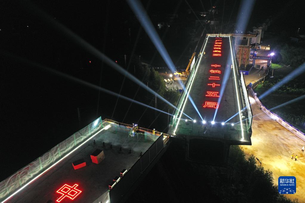 當日,廣西南(寧)玉(林)鐵路全線(xiàn)最大噸位雙幅轉體橋——福慶特大橋跨湘桂鐵路轉體橋在順時(shí)針旋轉后成功對接,兩幅對接后的轉體橋成為上跨湘桂鐵路的空中走廊,標志著(zhù)南玉鐵路建設取得重大突破。福慶特大橋全長(cháng)945米,轉體部分的橋梁梁體總長(cháng)220米,總重量超過(guò)1.2萬(wàn)噸。