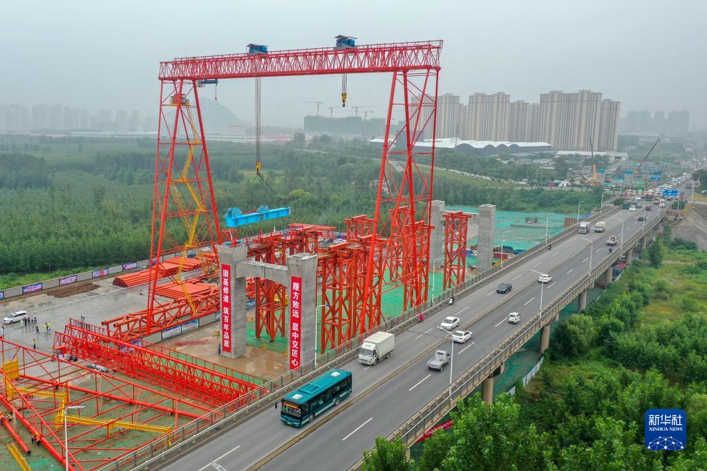 8月30日拍攝的濟南黃河公路大橋擴建工程施工現場(chǎng)(無(wú)人機照片)。