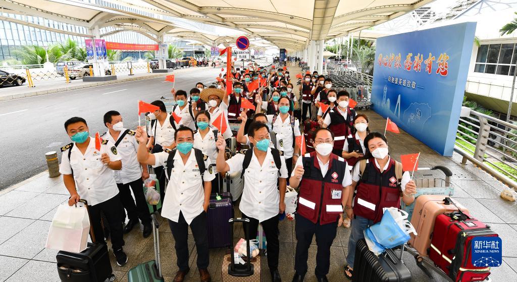 當日,來(lái)自上海、安徽、四川的援瓊醫療隊隊員陸續從海南返程。