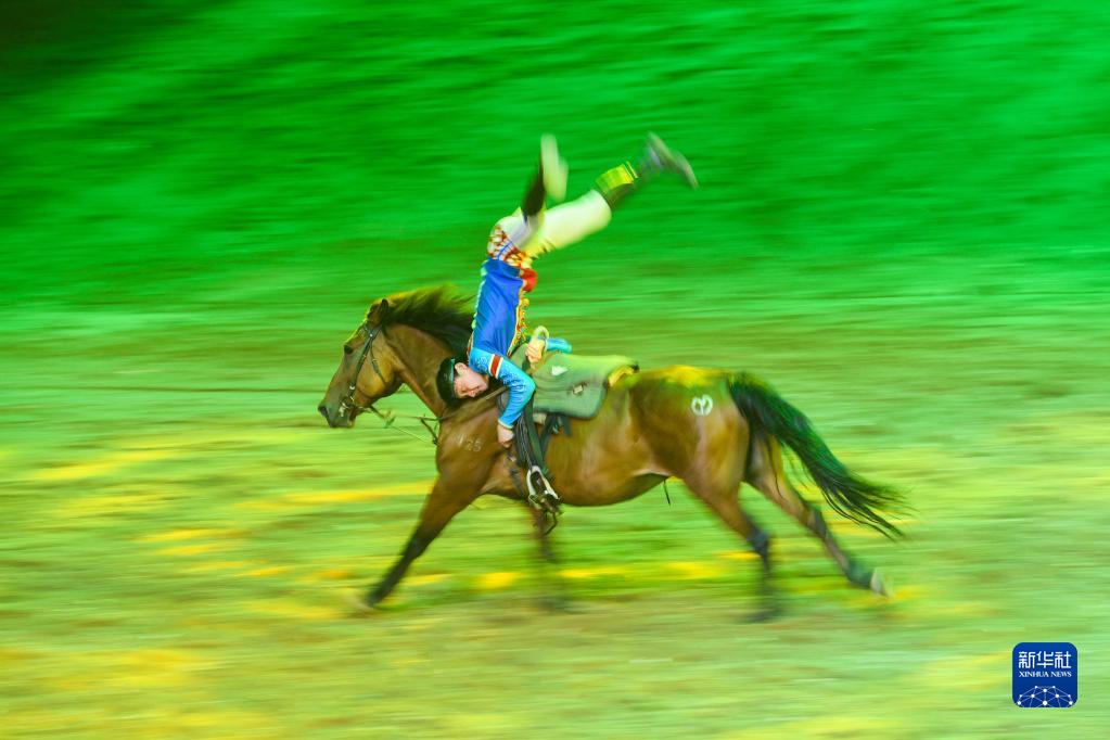 當日,由內蒙古藝術(shù)劇院出品的大型馬舞劇《千古馬頌》在呼和浩特上演。該劇以民族馬術(shù)、馬背雜技、舞馬表演、蒙古族歌舞樂(lè )等藝術(shù)元素為主要表現形式,融合了現代高科技舞臺技術(shù),體現了人與馬、自然和諧共存的精神。
