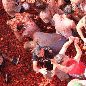 每年8月最后一個(gè)星期三,西班牙巴倫西亞地區的布尼奧爾小鎮都會(huì )舉行一年一度的傳統節日——“西紅柿節”。