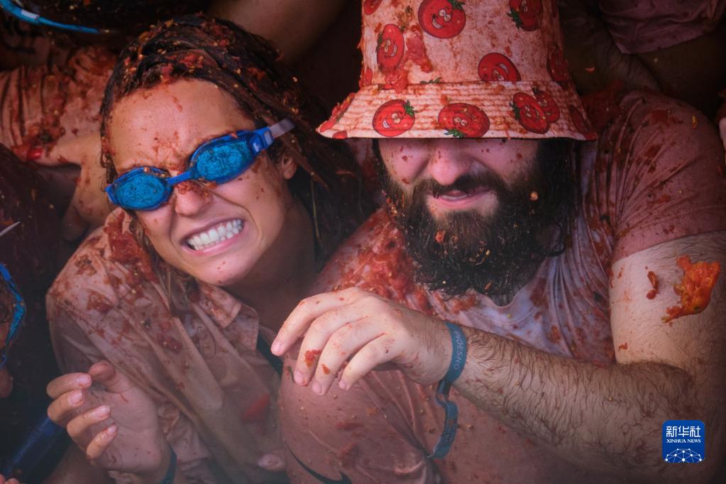 8月31日,在西班牙布尼奧爾舉行的“西紅柿節”上,人們參加“西紅柿大戰”。