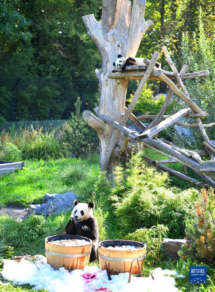 在德國出生的大熊貓雙胞胎兄弟“夢(mèng)想”和“夢(mèng)圓”8月31日在柏林動(dòng)物園迎來(lái)3歲生日。