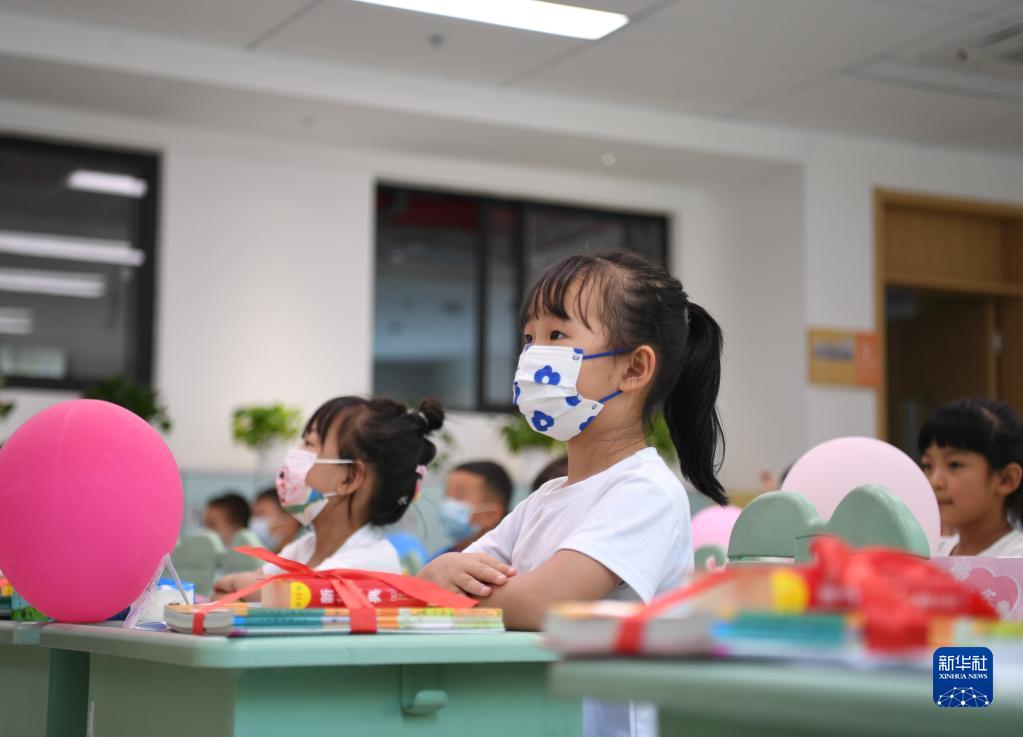 9月1日,河北雄安新區容東片區容和悅容小學(xué)一年級新生在上開(kāi)學(xué)第一課。容東片區是雄安新區實(shí)施回遷安置的首個(gè)新建回遷片區。