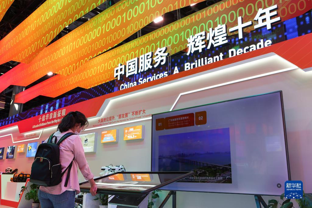 9月1日,觀(guān)眾在國家會(huì )議中心參觀(guān)中國服務(wù)貿易成就展專(zhuān)區。