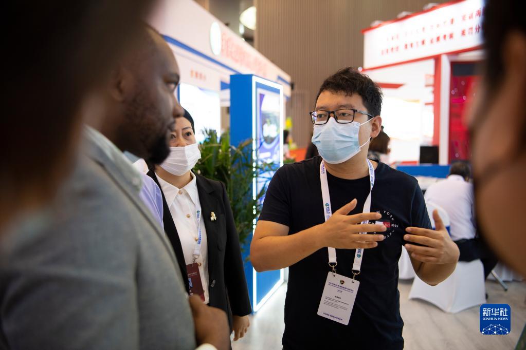 9月1日,一名參展商在博覽會(huì )上向參觀(guān)者介紹產(chǎn)品。
